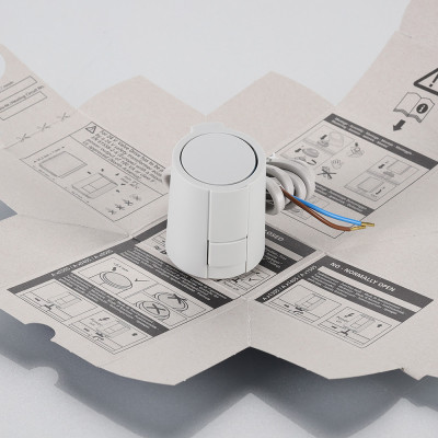 (VT.TE3040.A) Привод для автоматического управления радиаторным или коллекторным термостатическим клапаном систем водяного теплого пола и охлаждения зданий по сигналу от термостата, датчика или контроллера. Действие основано на расширении заполняющего сильфон армированного парафина при протекании электрического тока через встроенный нагревательный элемент. Нормально открытый. Присоединение сервопривода к клапану – через переходник (в комплекте).