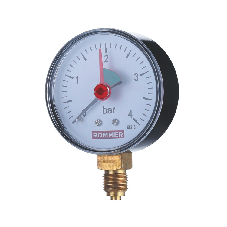 Манометр Rommer радиальный с указателем предела, 50 мм, 0...4 бар, 1/4