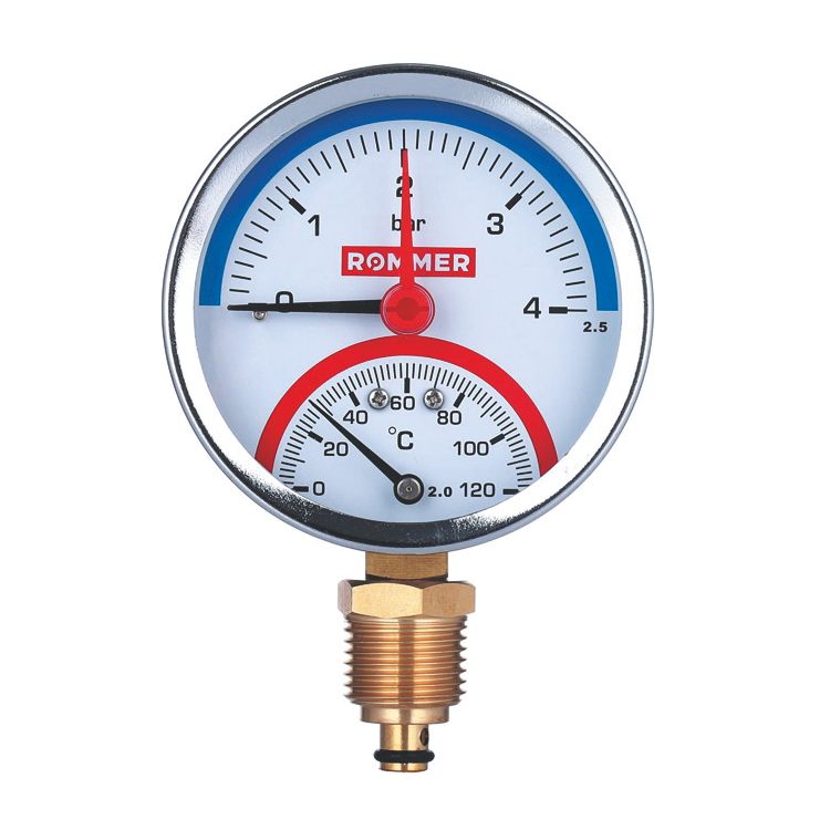 Стрелочные показывающие термоманометры с биметаллическим термочувствительным датчиком, аксиальные и радиальные ROMMER – предназначены для мониторинга давления и температуры сред в системах отопления, горячего и холодного водоснабжения, тепло- и холодоснабжения вентиляционных установок.