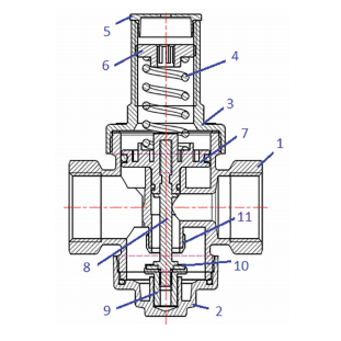 Редуктор поддерживает на выходе давление, не превышающее настроечное (допустимое отклонение составляет ±10 %), вне зависимости от скачков давления в сети. В статическом режиме давление после редуктора также не превышает настроечное. С обеих сторон редуктор имеет отверстие для подключения манометра.