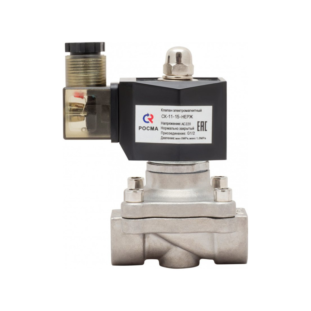 Клапан электромагнитный (соленоидный) Росма НЗ, 220В, 1/2, нержавеющая сталь
