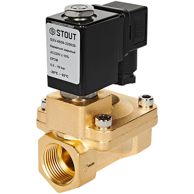 Клапаны двухпозиционные электромагнитные (Соленоиды) непрямого действия STOUT, тип SSV-0030 нормально закрытый (НЗ), предназначены для автоматического управления потоками среды, не агрессивной к материалам клапана (воды, масла, нейтральных газов и т. д.).