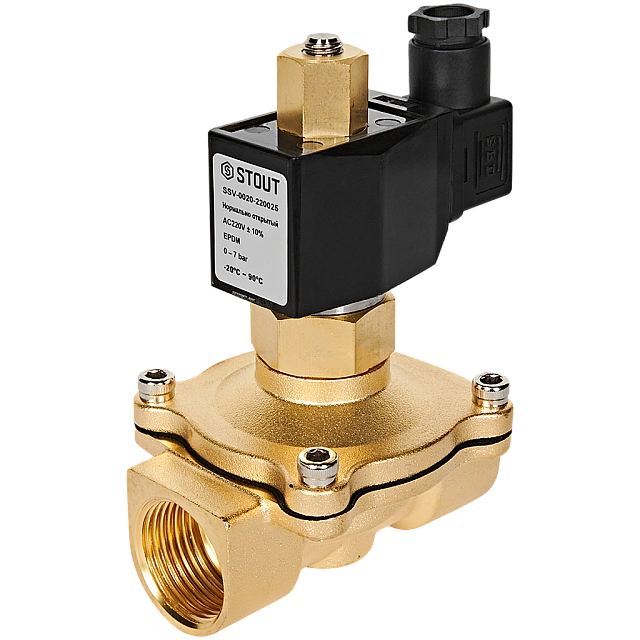 Клапаны двухпозиционные электромагнитные (Соленоиды) прямого действия STOUT, тип SSV-0020 нормально открытый (НО), предназначены для автоматического управления потоками среды, не агрессивной к материалам клапана (воды, масла, нейтральных газов и т. д.).