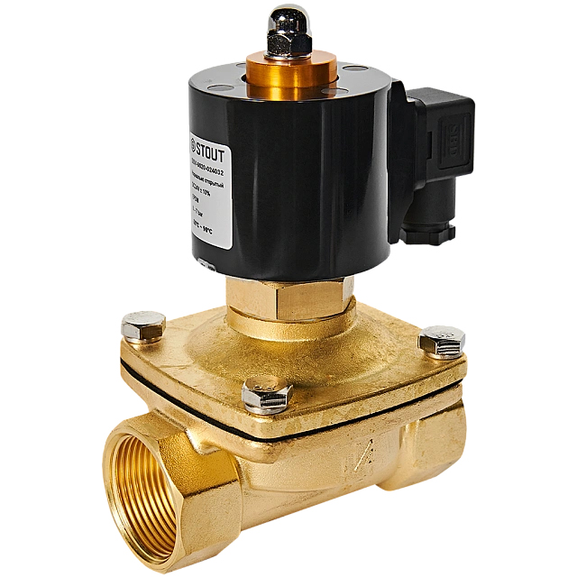 Клапан соленоидный (электромагнитный) Stout прямого действия, НО, 24В, G1 1/4, EPDM