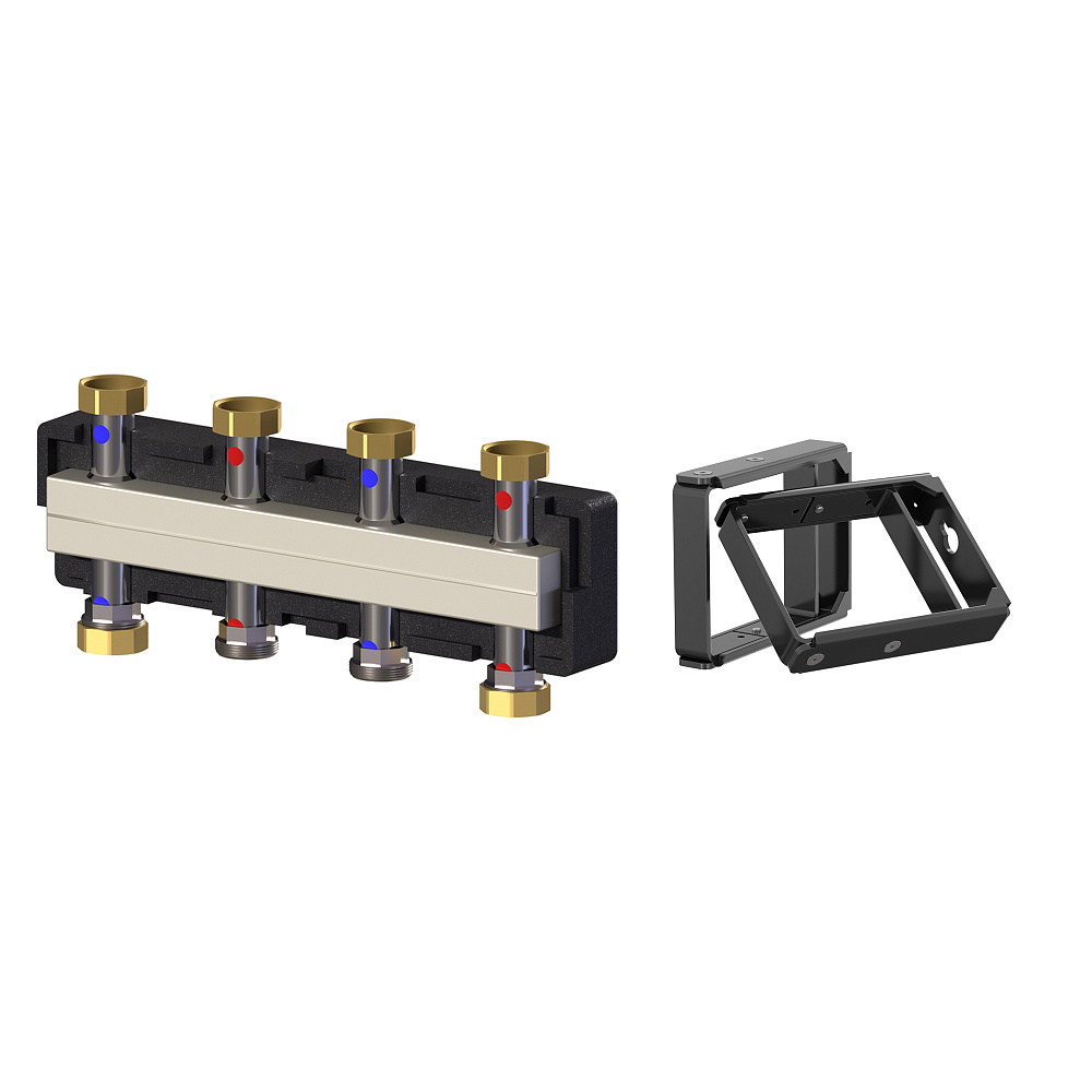 Подключение насосных групп с использованием накидных гаек и уплотнений (в комплекте) как сверху, так и снизу коллектора без использования дополнительных фитингов.