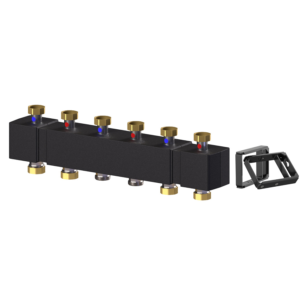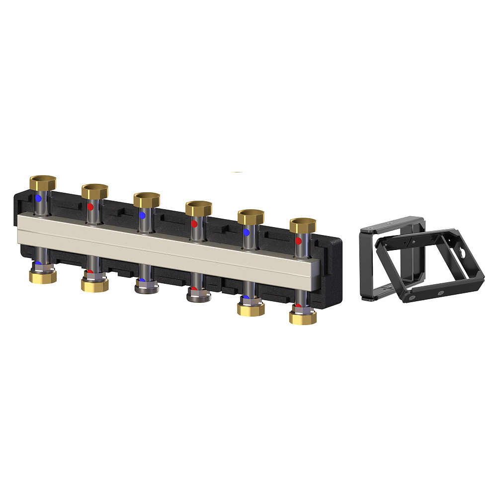Подключение насосных групп с использованием накидных гаек и уплотнений (в комплекте) как сверху, так и снизу коллектора без использования дополнительных фитингов.