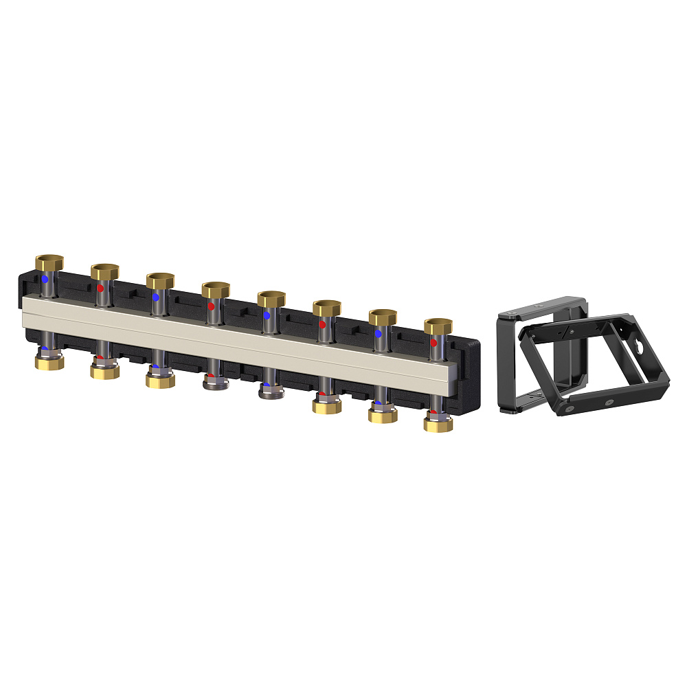 Подключение насосных групп с использованием накидных гаек и уплотнений (в комплекте) как сверху, так и снизу коллектора без использования дополнительных фитингов.