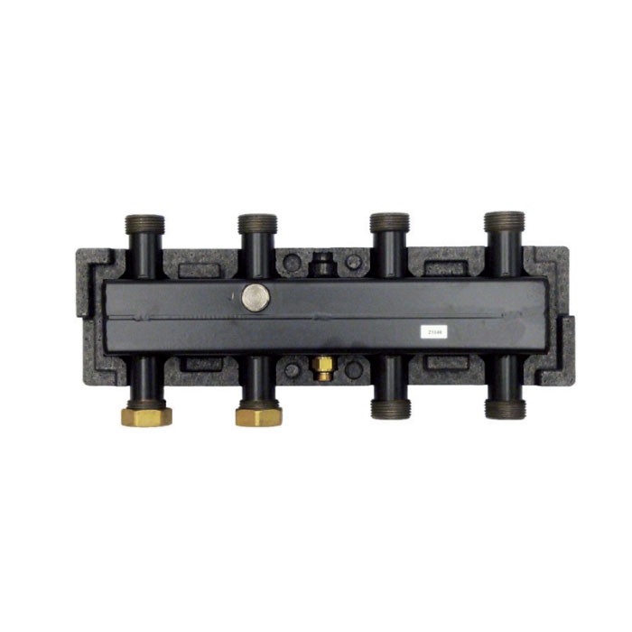 Две пары присоединительных патрубков сверху и снизу коллектора обеспечивают подключение до 3-х насосных модулей типоразмера DN20. В комплекте: блочная ЕРР-изоляция, кронштейны для настенного крепления распределительного коллектора, крепёжные элементы.