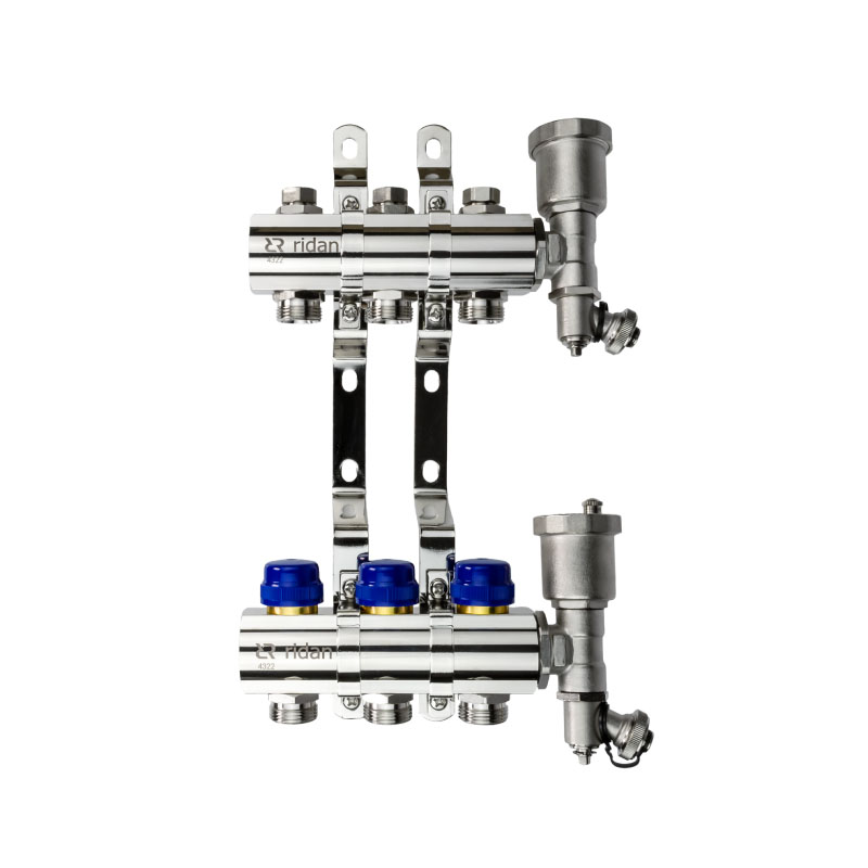 Коллектор Ридан FHF-5R с кронштейнами и воздухоотводчиками, 5 контуров (088U0705R)