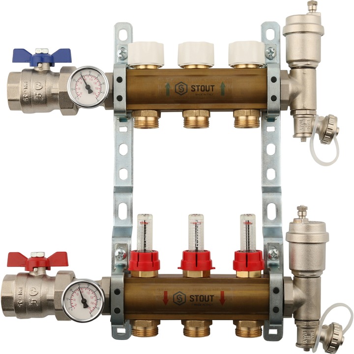 Коллектор Stout распределительный из латуни с расходомерами 1/3/4x3, SMB 0473 000003