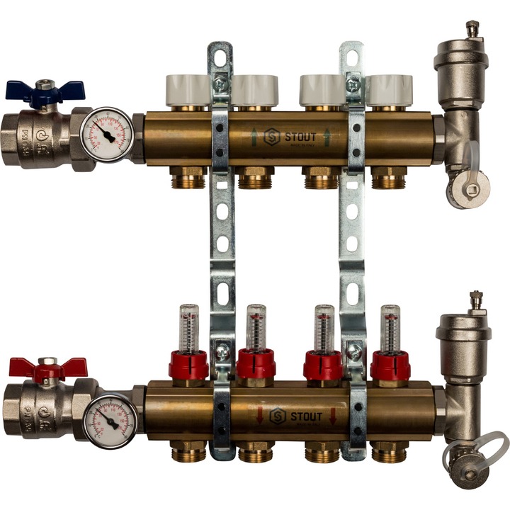 Коллектор Stout распределительный из латуни с расходомерами 1/3/4x4, SMB 0473 000004