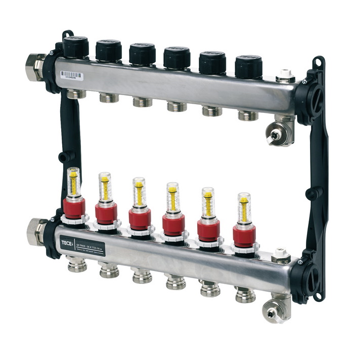 Коллектор TECE для теплого пола с расходомерами 1х3/4ЕК 5 контуров, квадратное сечение