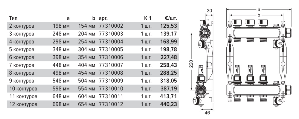 Коллектор TECE для теплого пола с расходомерами 1х3/4ЕК 8 контуров, квадратное сечение