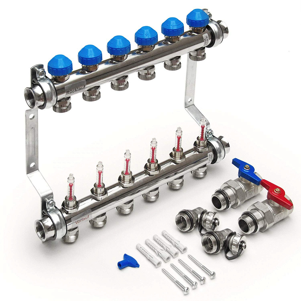 Коллектор предназначен для распределения и регулирования расхода теплоносителя в отдельных контурах систем напольного