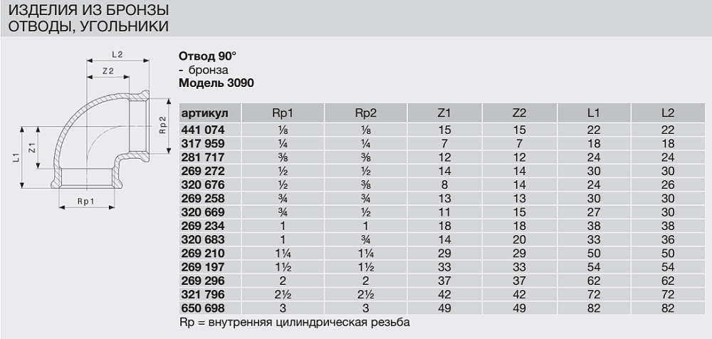 Отвод Viega 90 бронза Rp-резьба 3090 1/2 x 3/8 320676