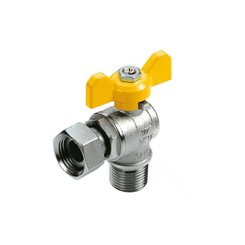 Угловые краны для ГАЗА, наружная резьба ISO7/EN 10226 - накидная гайка с внутренней резьбой, с ручкой-бабочкой желтого цвета