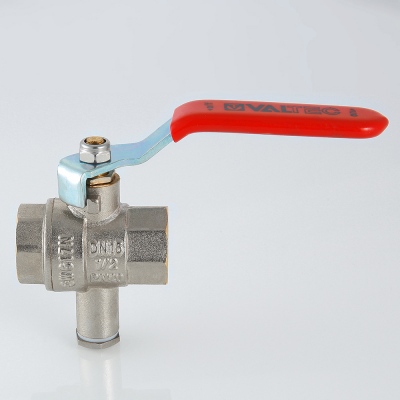 Латунный никелированный шаровой кран VT.247.Nсо штуцером для подключения датчика температуры погружного типа. Применяется в составе узлов учета расхода тепловой энергии и арматурных модулей для водяного теплого пола.