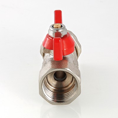 Шаровой кран VT.342.N редуцированный (уменьшенного прохода) для использования в составе инженерных систем и технологических установок на основе металлопластиковых труб при температуре от –15 до +110 °С и рабочем давлении до 10 бар. Неремонтопригодный, с минимальным ресурсом в 4 тыс. циклов. Оснащен ручкой типа «бабочка» из алюминиевого сплава с эпоксидной покраской. Соединение с металлополимерным трубопроводом – обжимное, одностороннее; резьба второго патрубка – внутренняя. Не предназначен к применению на стояках, магистральных трубопроводах и участках систем, в которых могут возникнуть изгибающие усилия, передаваемые на корпус крана.