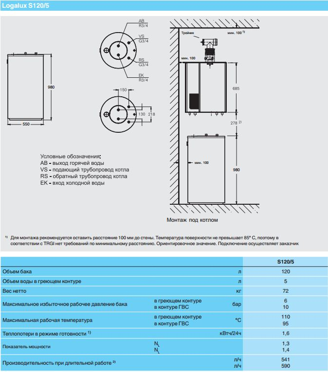 Основные особенности емкостного водонагревателя Buderus Logalux S120: