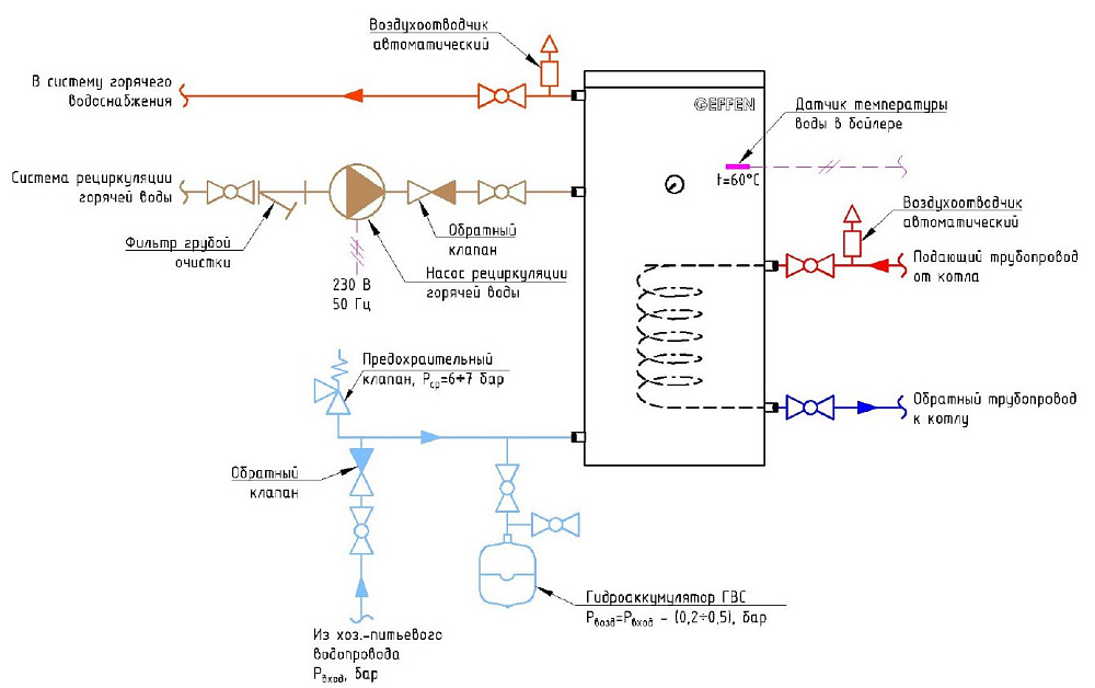 - Выход горячей воды ГВС: 3/4" наружная резьба
