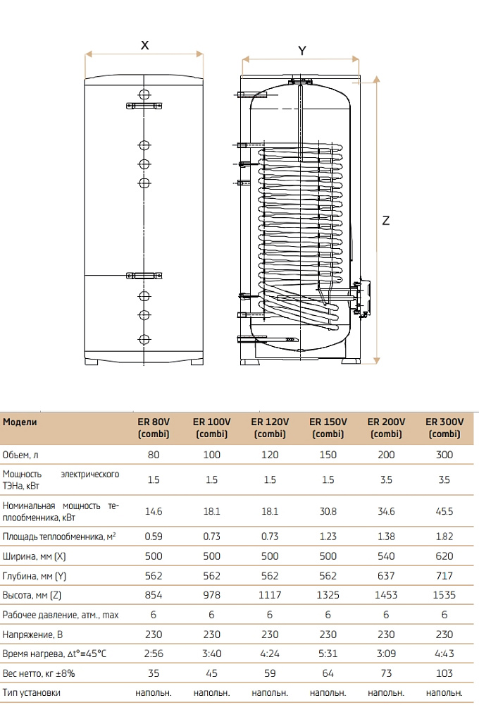 Водонагреватель Thermex (Термекс) COMBI ER V — установка, предназначенная для квартир и частных домов. Для нагрева воды применяется элемент, проводящий электрический ток. Встроенный индикатор позволяет визуально отслеживать температуру воды.