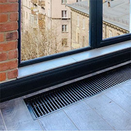 Московский завод компании «Вилма» производит широкий ассортимент встраиваемых, напольных, парапетных и настенных приборов с водяным конвективным обогревом. Изготавливаются конструкции в линейном и радиальном исполнении двух типов – с естественной и принудительной вентиляцией. Последние укомплектованы немецкими тангенциальными вентиляторами с безопасным напряжением питания 12В (постоянный ток). Их применение значительно увеличивает теплообмен в помещении, а уровень шума на максимальных оборотах не превышает 22 дБ.
