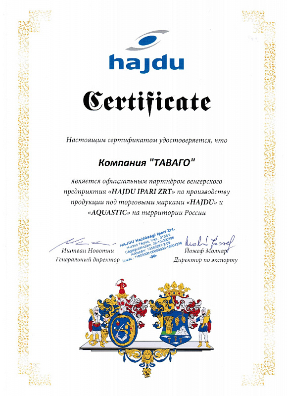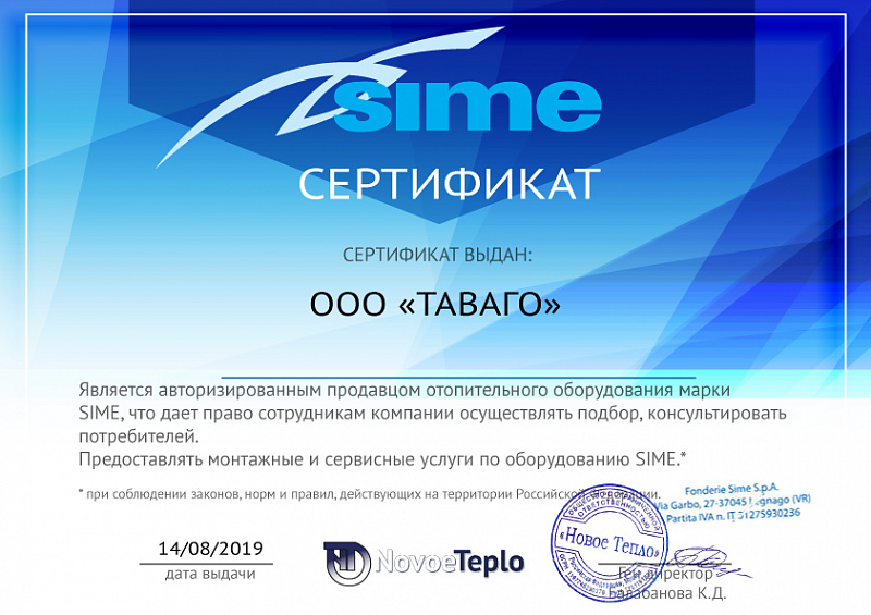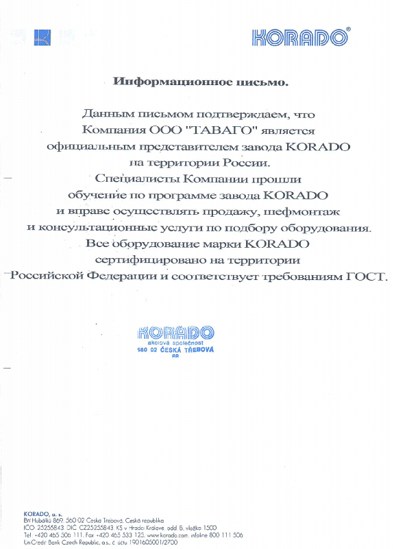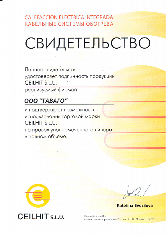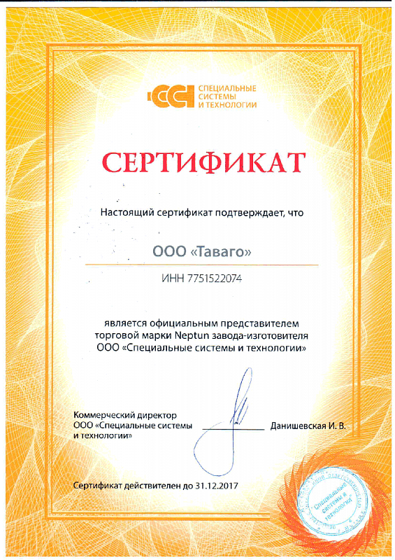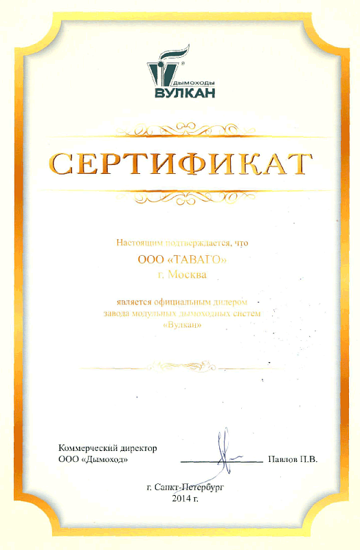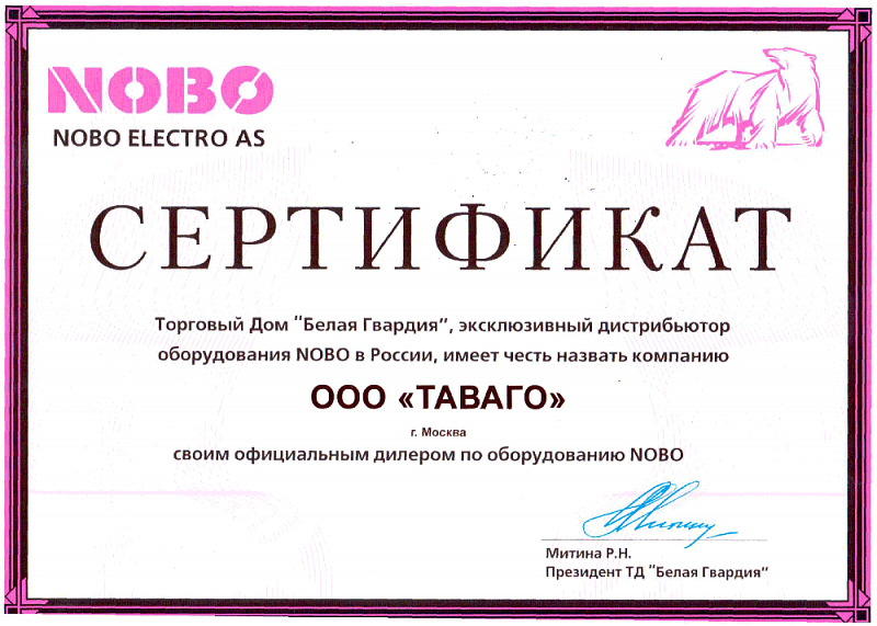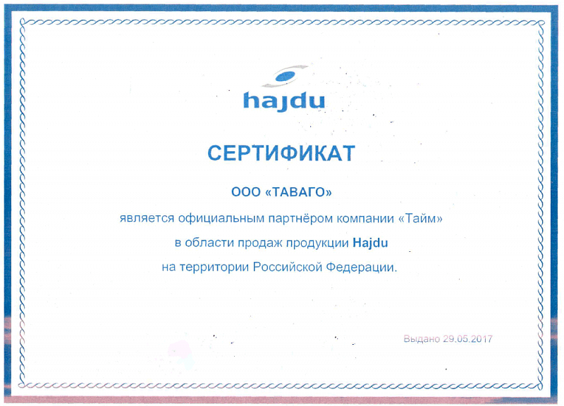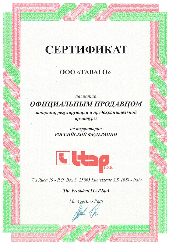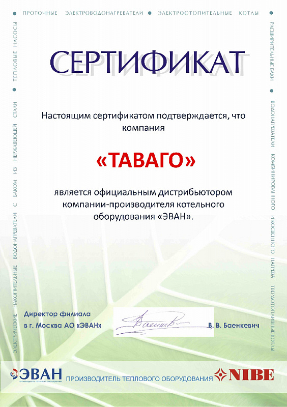 Сертификаты на продукцию компании Таваго