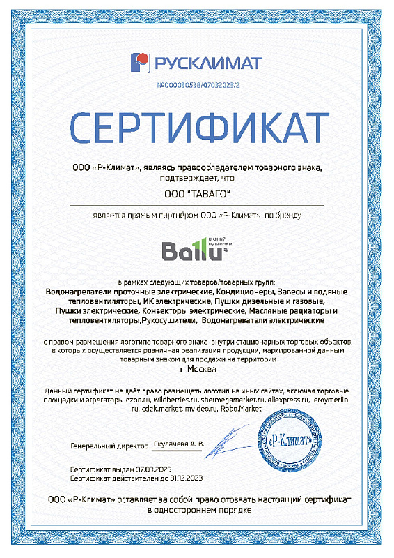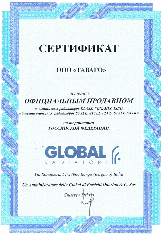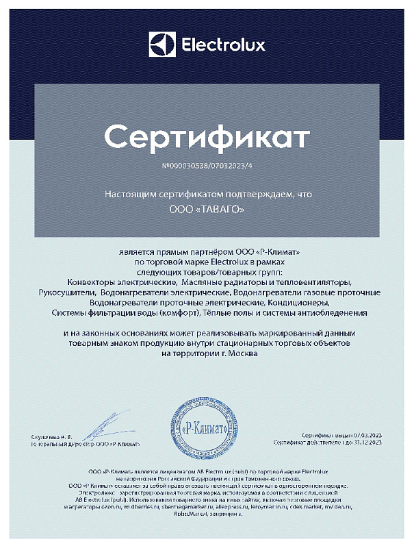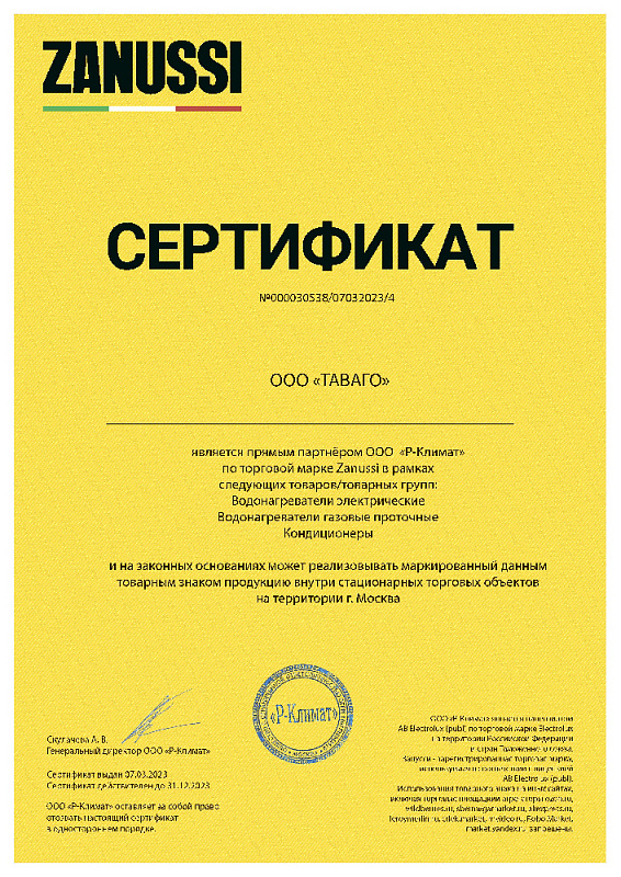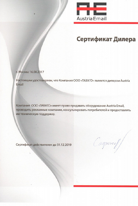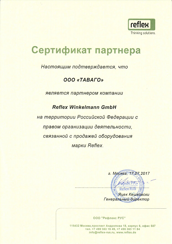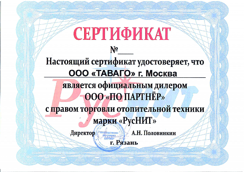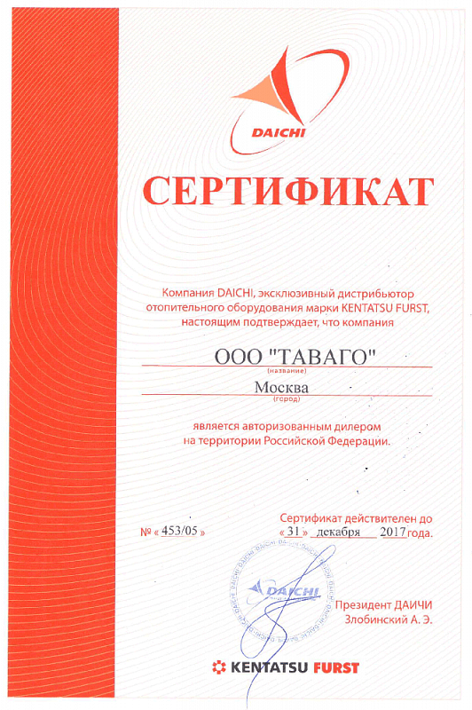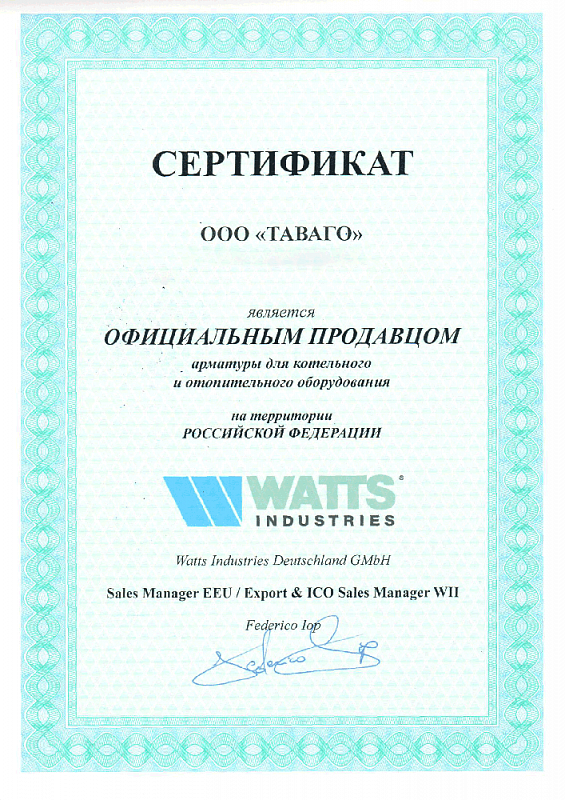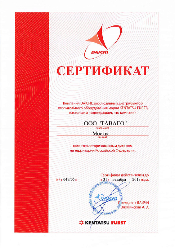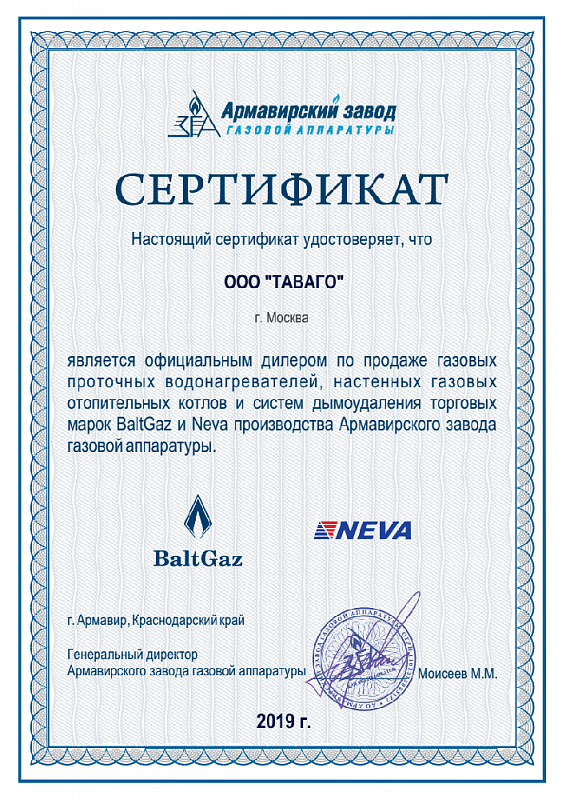 Сертификаты на продукцию компании Таваго