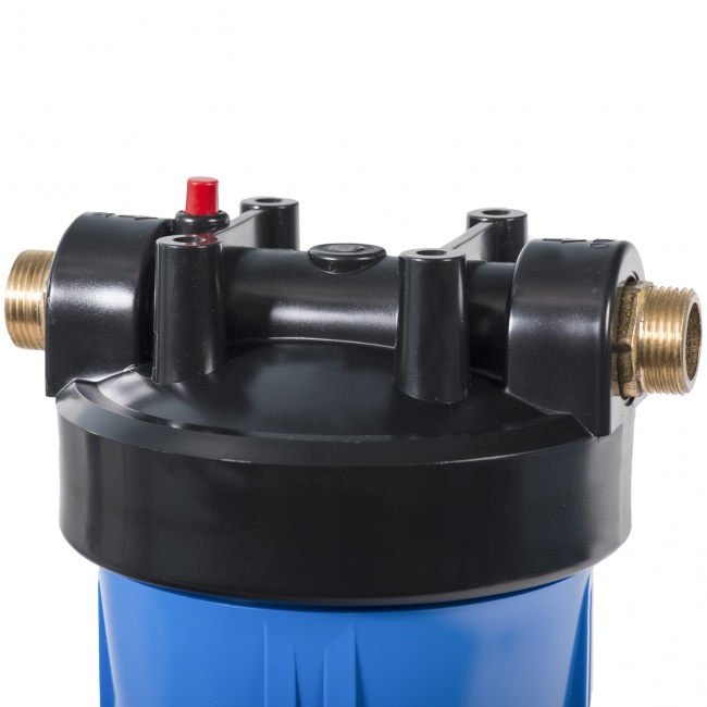 Корпус Гейзер 10BB изготовлен из синего полипропилена; крышка корпуса – черный полипропилен в комплекте с латунными ниппелями. Корпус рассчитан на работу под давлением и установку на входе в систему холодного водоснабжения. В производстве корпусов используется только первичное сырье пищевого класса.