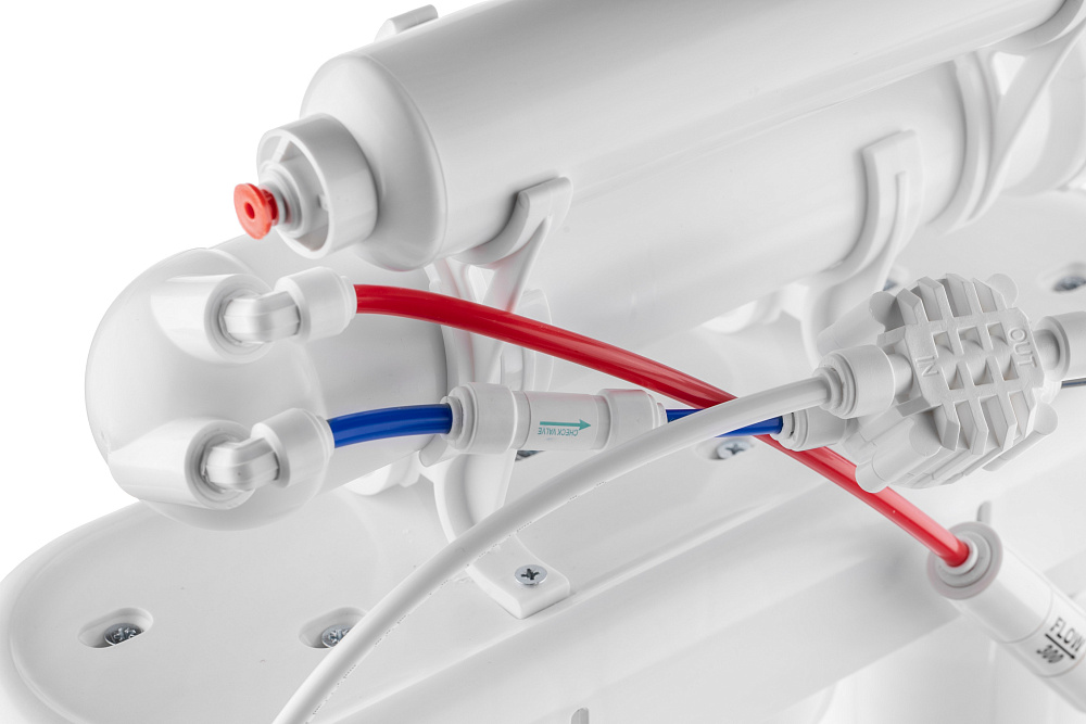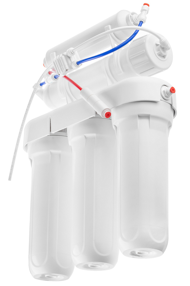 По эффективности очистки обратный осмос не имеет себе равных. Бытовые фильтры, использующие этот способ очистки, удаляют практически все известные загрязнения. Обратноосмотическая мембрана разделяет приходящую на нее воду на чистую воду и поток концентрированных примесей, уходящий в дренаж. Это достигается за счет того, что поры обратноосмотической мембраны имеют размер молекулы воды, а все примеси гораздо больше.