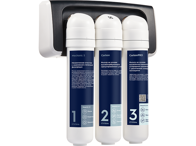 - CarbonBlock: финишная очистка, удаление неприятных запахов и вкусов, остатков хлора и вредных примесей