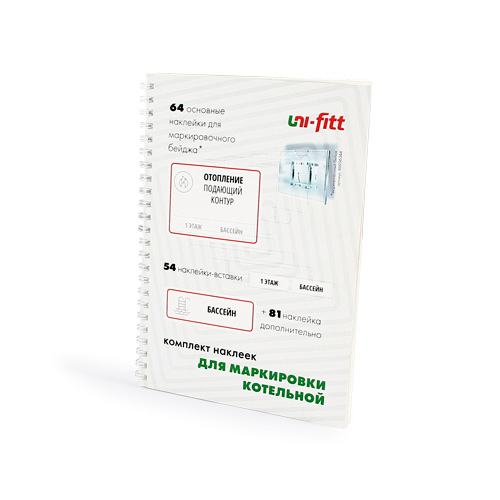 Предназначены для маркировочного бейджа. Книжка содержит 64 основных наклейки (60 ? 45 мм), которые клеются на табличку для маркировки труб артикул 869S6344, 54 наклейки-вставки (23 ? 7 мм) и 81 дополнительная наклейка.