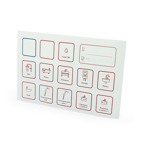 Предназначены для маркировки потребителей. В комплект входит 2 листа с наклейками для потребителей ГВС и ХВС.