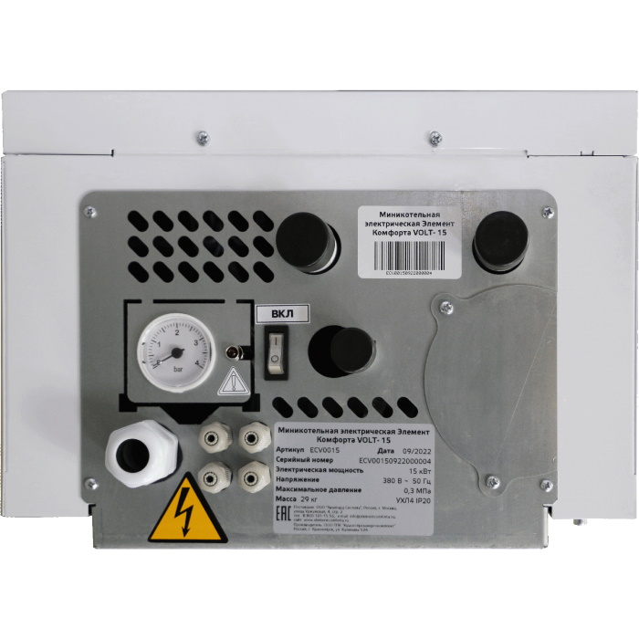 Электрокотел Элемент Комфорта VOLT-15 предназначен для отопления помещений, бытового (дачи, коттеджи, загородные дома) и производственного назначения площадью до 150 кв. м. или подключения к системе теплого пола.