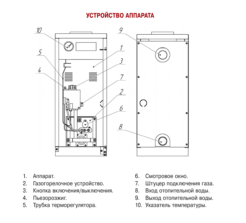 - • газогорелочное устройство на основе газового клапана «SIT» и горелки «POLIDORO» (Италия);;