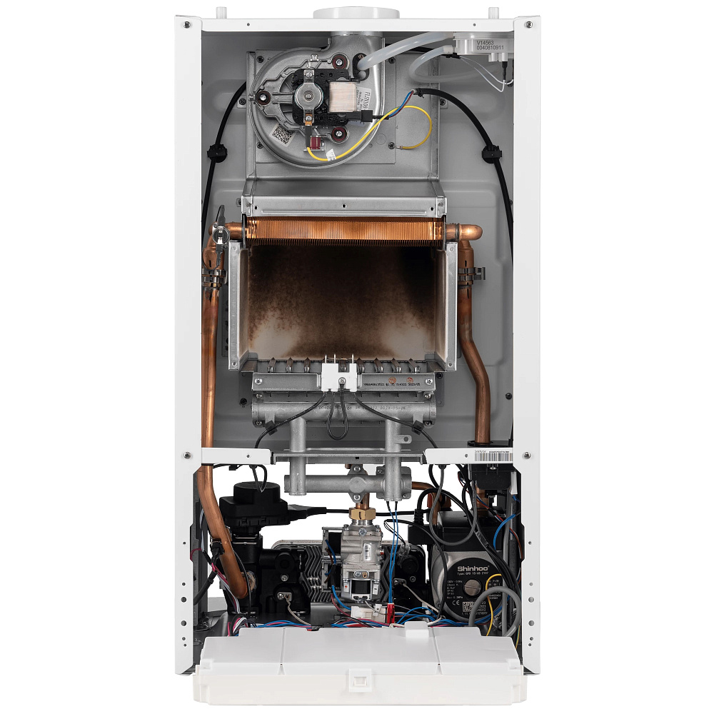 Котлы имеют высокоэффективный первичный теплообменник, изготовленный из бескислородной меди, который отличается высокой надежностью и модернизированной горелкой работающей в широком диапазоне мощностей.