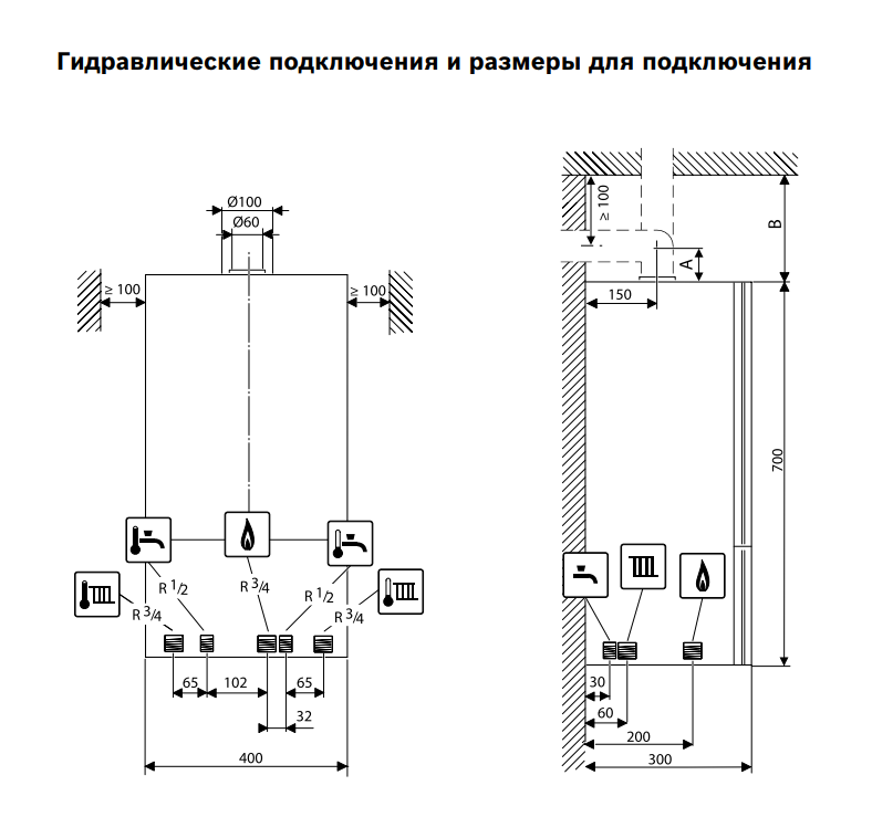 • Диаметр дымохода 60/100 мм