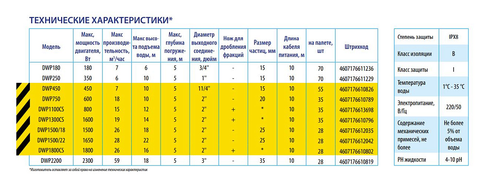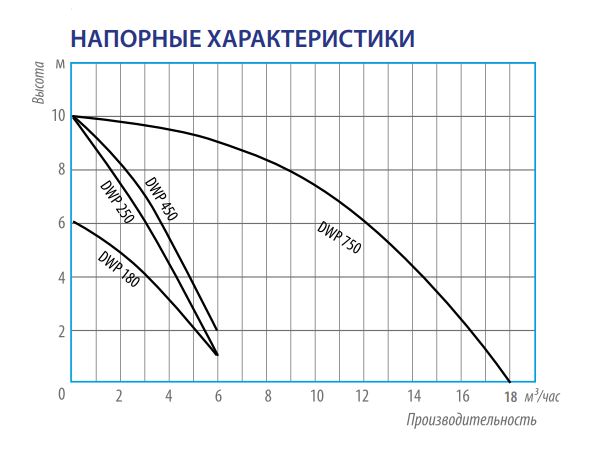 • Рабочее колесо: чугун (пластик DWP180, DWP 250).