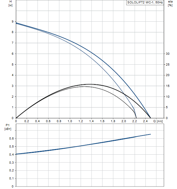 Sololift2WC-1 приспособлена к откачиванию сточных вод из раковин и унитазов, содержащих, кроме воды только фекалии и туалетную бумагу.