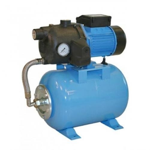 Насосная станция состоит из поверхностного насоса, горизонтального, объемом 24 л, гидроаккумулятора, реле давления, манометра, соединительной арматуры и электрошнура с вилкой.