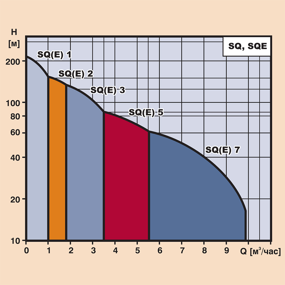 Насосы SQ/SQE являются компактными, трёхдюймовыми, многоступенчатыми, центробежными насосами, которые могут устанавливаться даже в самой узкой скважине (минимальный диаметр скважины 76 мм). Встроенные электронные компоненты повышают уровень комфорта и значительно облегчают эксплуатацию насосов серии SQ/SQE. Они гарантируют надёжное водоснабжение при любых условиях.