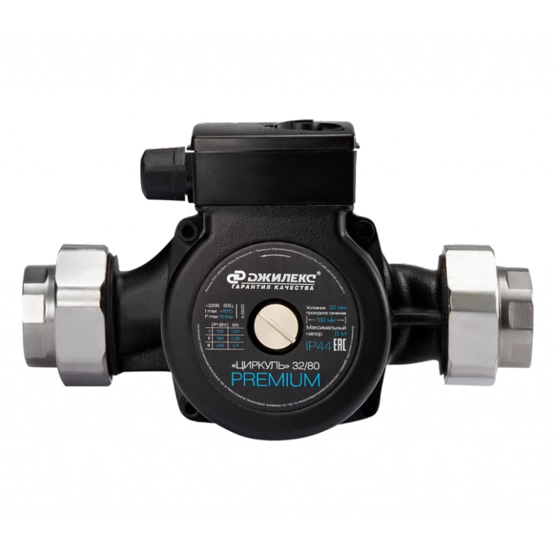 Циркуляционный насос Джилекс Циркуль Премиум 32/80 предназначен для циркуляции воды или теплоносителя в системах отопления с присоединительным размером гайки 1 1/4 дюйм (32 мм) и максимальным напором 8 метров (80 дм).