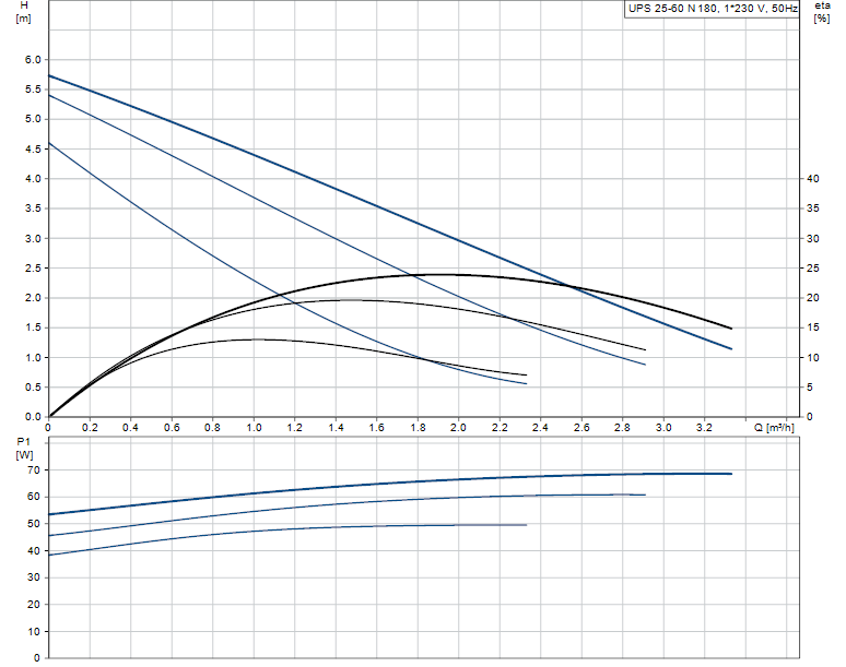 Насос UPS 25-60 N 180, оснащенный электродвигателем с мокрым ротором и защищенным статором, без сальниковых уплотнений, с двумя уплотнительными кольцами. Подшипники смазываются перекачиваемой жидкостью. частоты вращения.