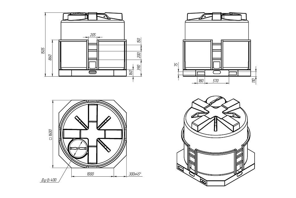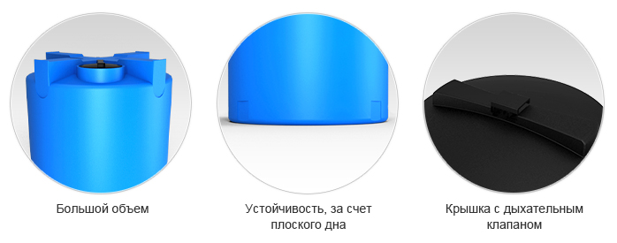 Емкость Т 2000 устойчива к агрессивным средам и к физическому воздействию, изготовлена из сверхпрочного полиэтилена методом ротационного формования. В данной емкости могут храниться пищевые продукты, питьевая и техническая вода и другие вещества, в том числе агрессивные. Горловина бака смещена относительно центра, что упрощает ее использование. Крышка оснащена дыхательным клапаном. По желанию в емкость можно установить указатель уровня жидкости, механический или электрический поплавковый клапан, а так же различные отводы.