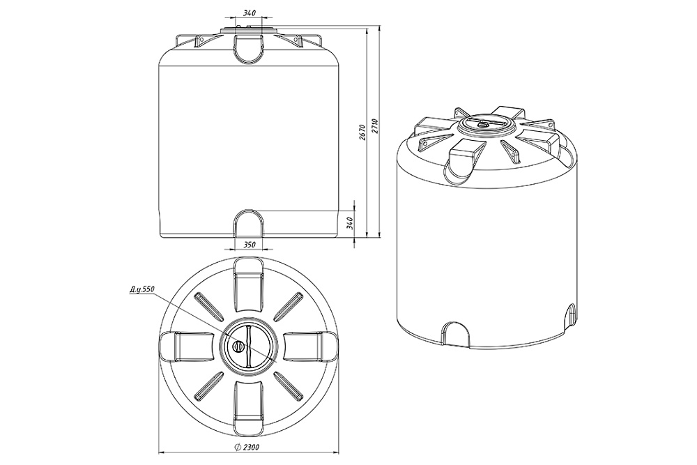 Емкость укомплектована крышкой с дыхательным клапаном. Возможна установка отводов и любой дополнительной арматуры.