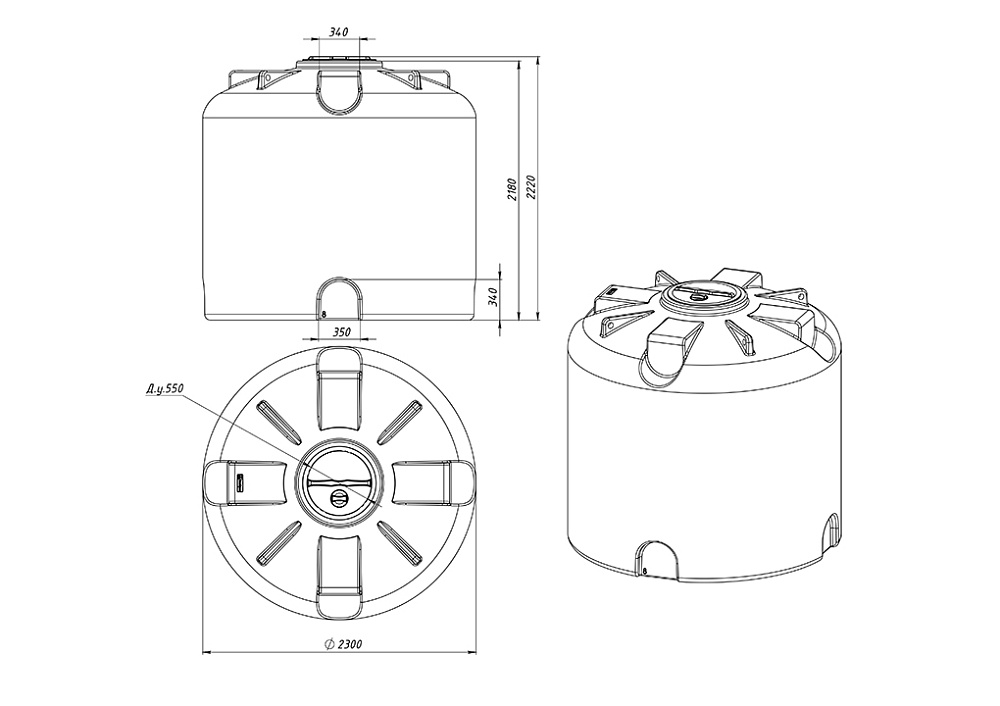 Емкость укомплектована крышкой с дыхательным клапаном. Возможна установка отводов и любой дополнительной арматуры.