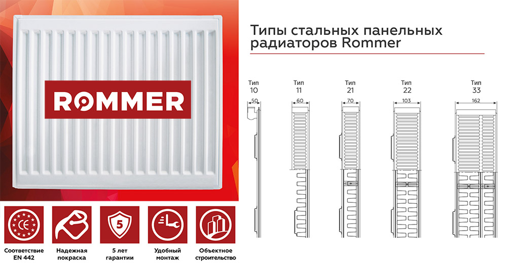 Стальной панельный радиатор отопления Rommer Compact 11/300/400