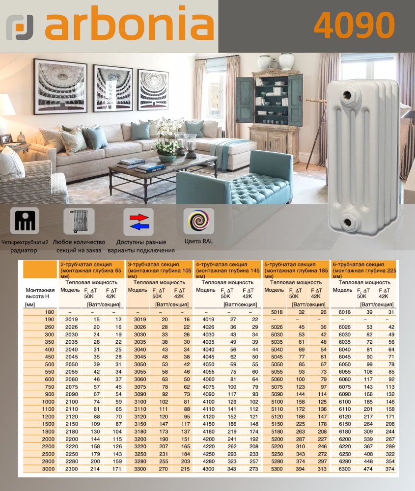 Стальной трубчатый радиатор отопления Arbonia 4090 / 1 секция