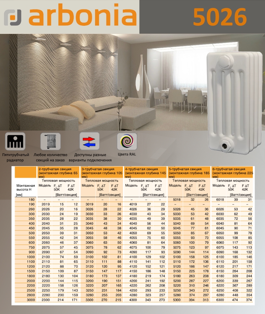 Стальной трубчатый радиатор отопления Arbonia 5026 / 1 секция
