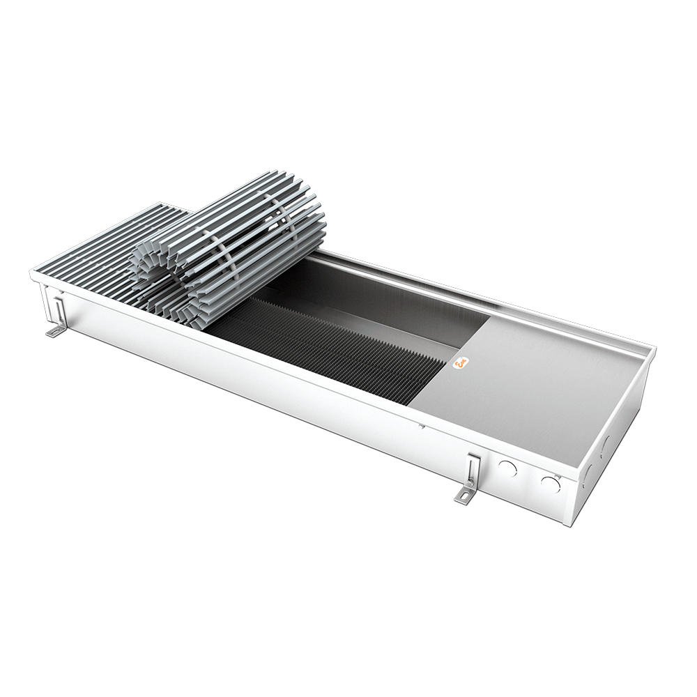 Встраиваемый в пол конвектор Eva K с естественной конвекцией - это отопительный прибор, в котором установлен медно-алюминиевый теплообменник, тепло от которого передаётся в отапливаемое помещение путём естественной конвекции.
